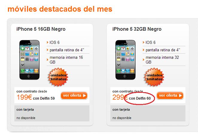 - Delfín 60: Permite acceder a ofertas interesantes de móviles subvencionados, que en ocasiones puntuales llega al lanzamiento de móviles de alta gama a 0 euros, aunque ello es a cambio de 24 meses de permanencia en operador y 18 meses de permanencia en la tarifa.