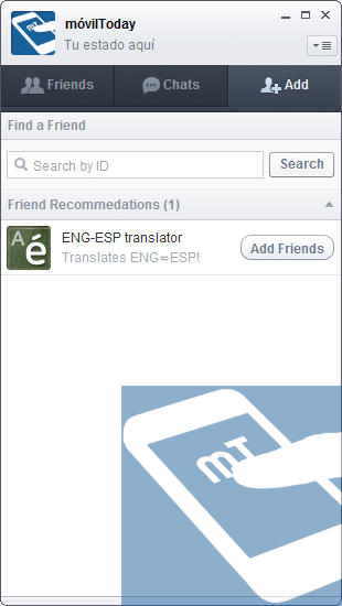 En «add» nos aparecerán los contactos sugeridos al igual que ocurre en la versión móvil. También podremos buscarlos mediante el nombre de usuario que nuestros amigos nos hayan proporcionado.