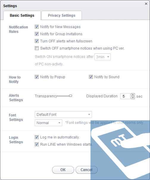 - Login Settings. Aquí podremos elegir si queremos iniciar sesión automáticamente cuando iniciemos LINE y si queremos que el propio LINE se inicie al iniciar Windows.
