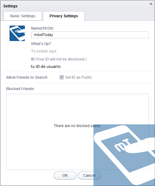 Aparecerá una ventana con dos pestañas, «Basic Settings» y «Privacy Settings»