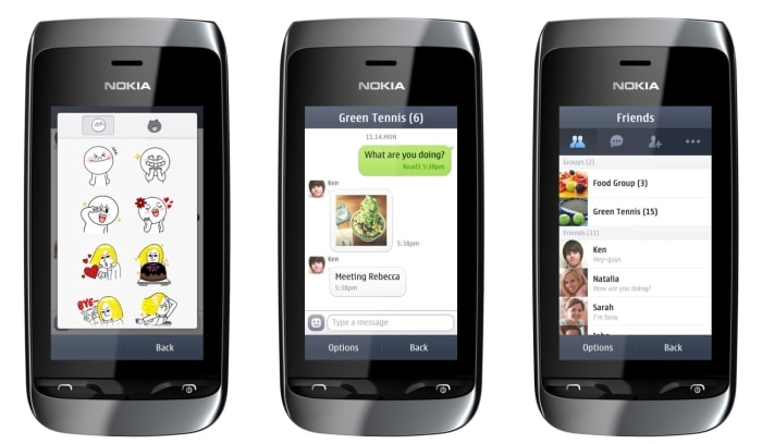 La primera versión de LINE para móviles Asha de Nokia estará disponible para toda la gama de dispositivos complentamente táctiles, es decir para el siguiente listado: