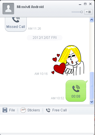 Si quieres hacer una llamada desde el PC solo tendrás que pulsar el icono de Free Call, mientras estás hablando también puedes usar el chat y enviar pegatinas (stickers). Por ahora las llamadas de voz gratuitas no son compatibles con la versión móvil para Windows Phone y BlackBerry.