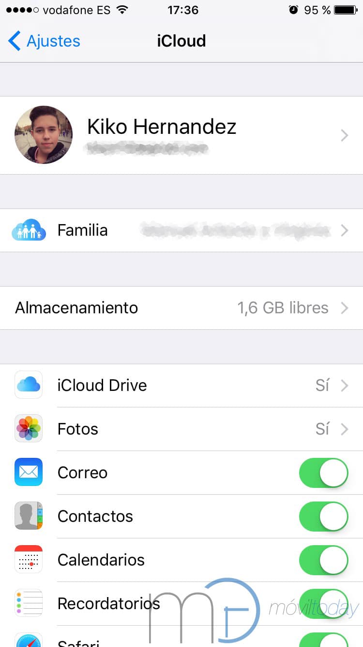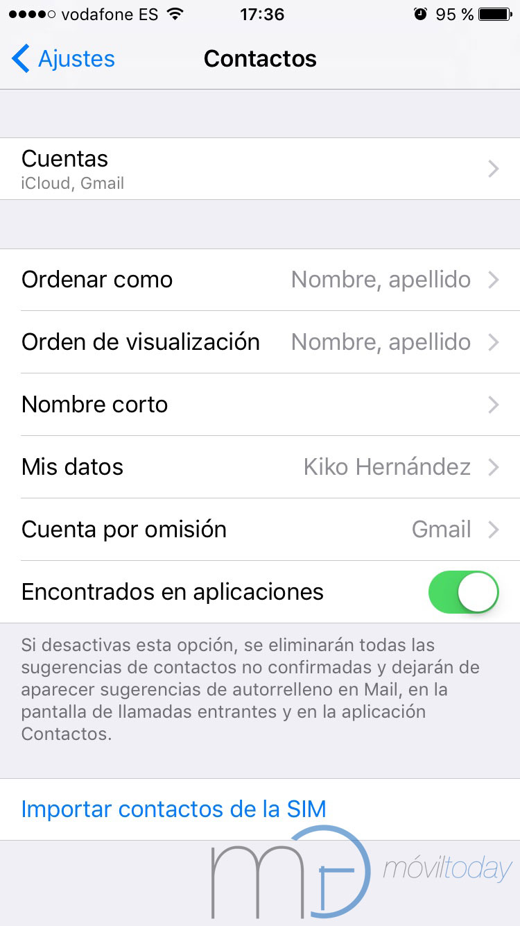 Si pasamos de un iPhone a otro, podemos utilizar iCloud como medio para transferirlos de un terminal a otro. Entrando a la sección de iCloud en los ajustes y activando la pestaña de contactos.