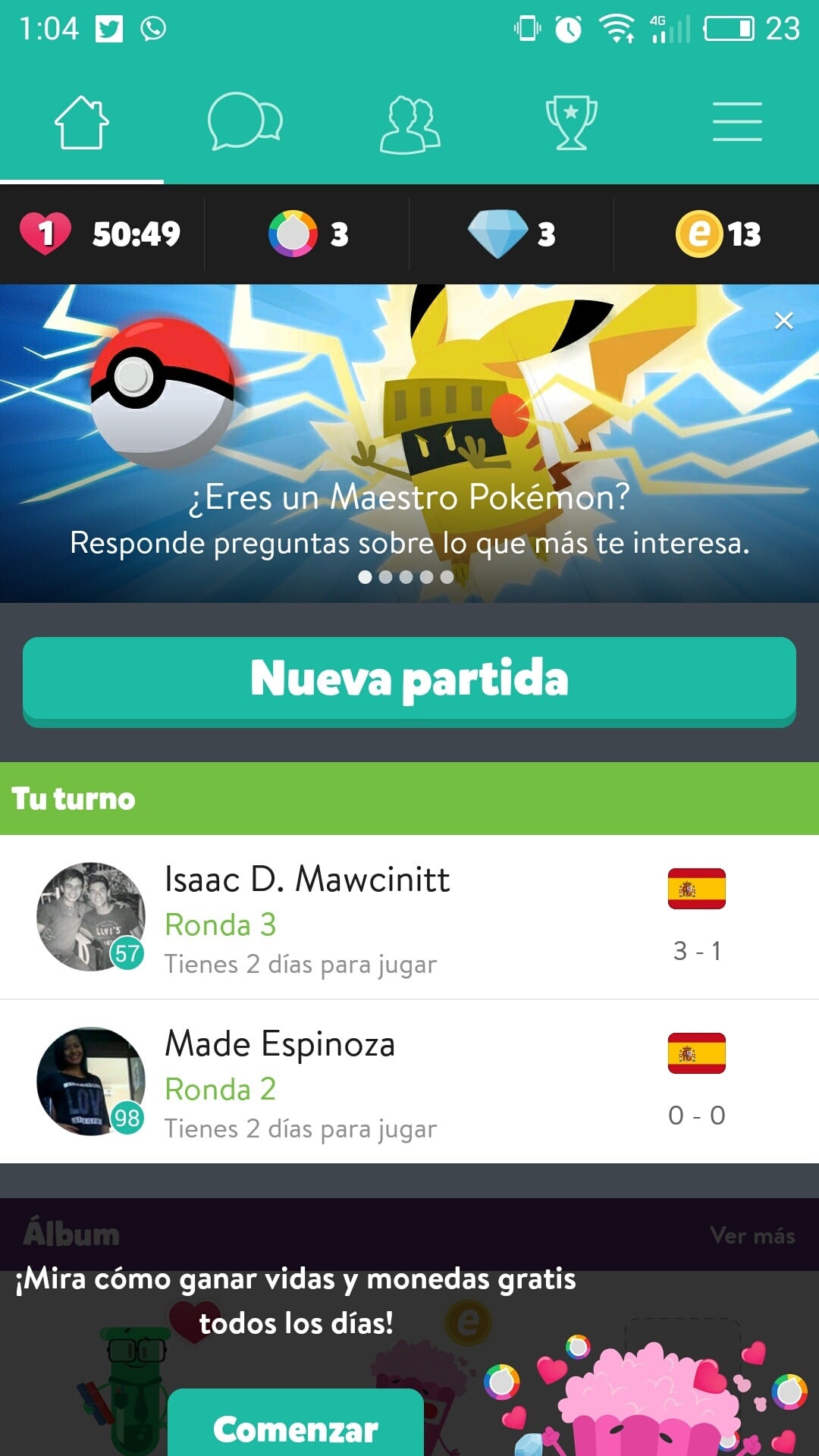 La app no solo se basa en jugar, sino que también dispone de un sistema de chat y un ranking para poder ver nuestro puesto respecto a amigos.