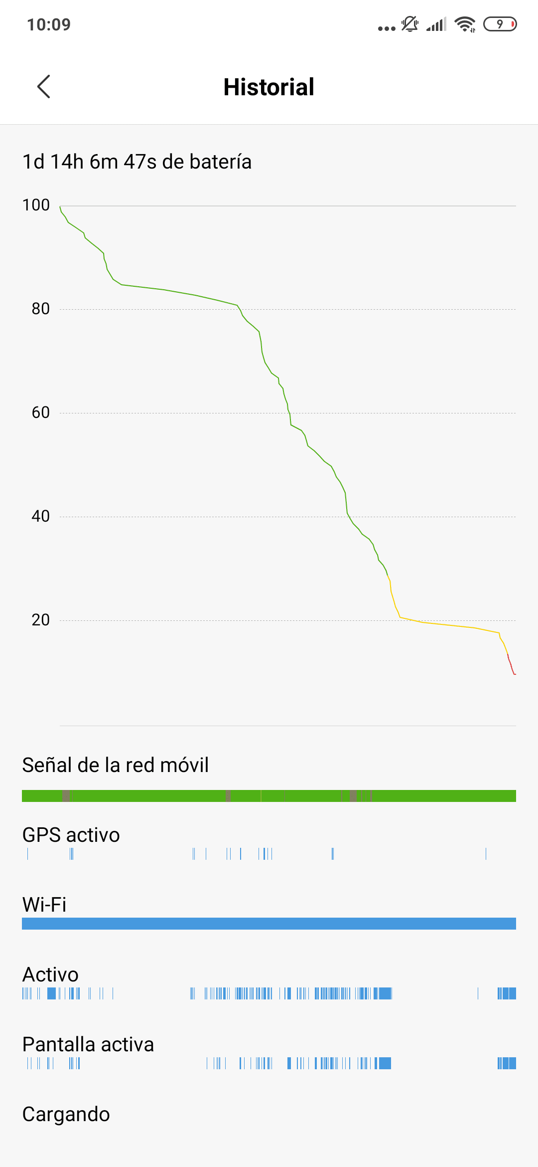 En las pruebas que hemos ido realizando durante este tiempo hemos logrado llegar a más de 2 días y 3 horas de uso con una media de casi 2 horas y media de pantalla diaria.